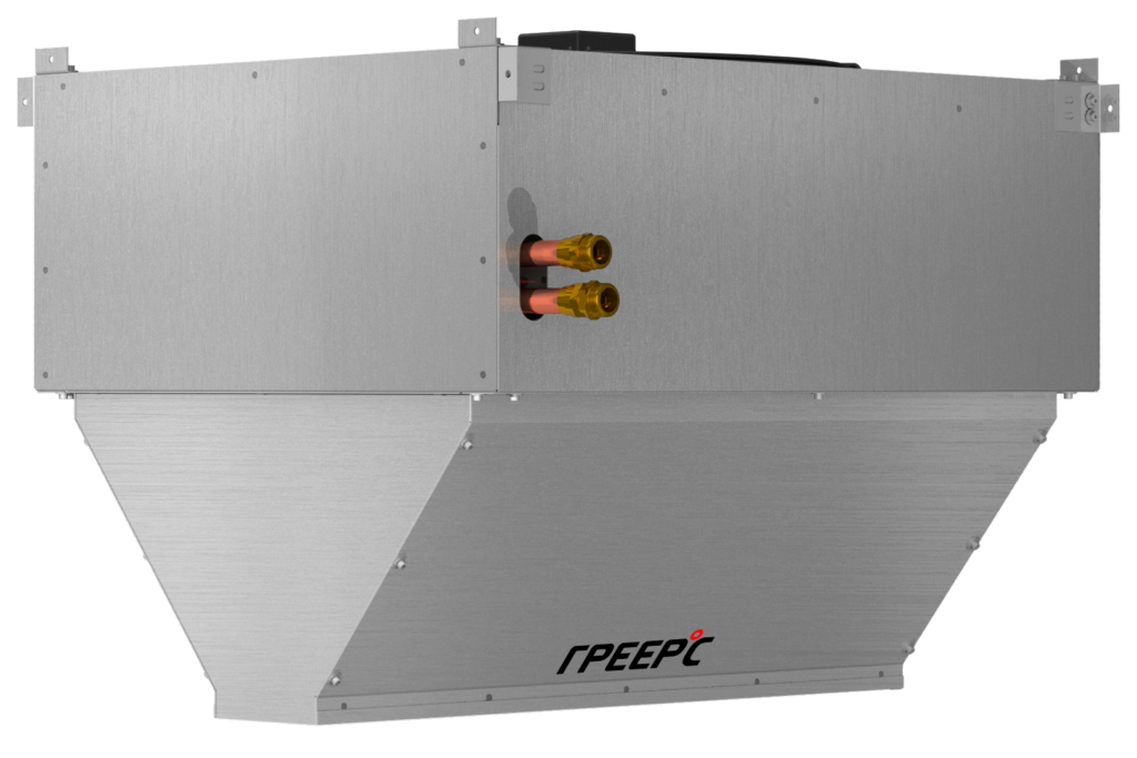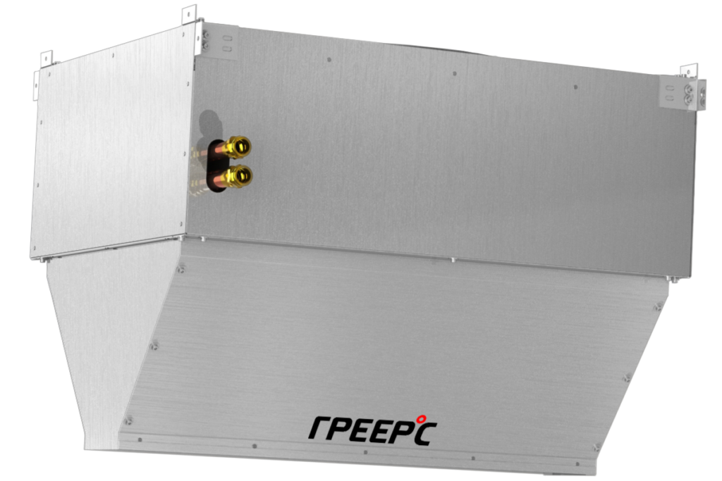 Промышленные воздушные завесы в моноблочном корпусе ГРЕЕРС ЗВП-М4-100В (водяные) предназначены для защиты помещений от потери или неконтролируемого притока тепла. Устанавливая их над дверным проемом, мы защищаем помещение от попадания холодного воздуха снаружи в зимний период или теплого воздуха в охлаждаемое помещение в летний период. Воздушные завесы ГРЕЕРС ЗВП-М в стандартном исполнении оснащены вентилятором и монтажными креплениями. Эффективная длина струи — 12 метров.